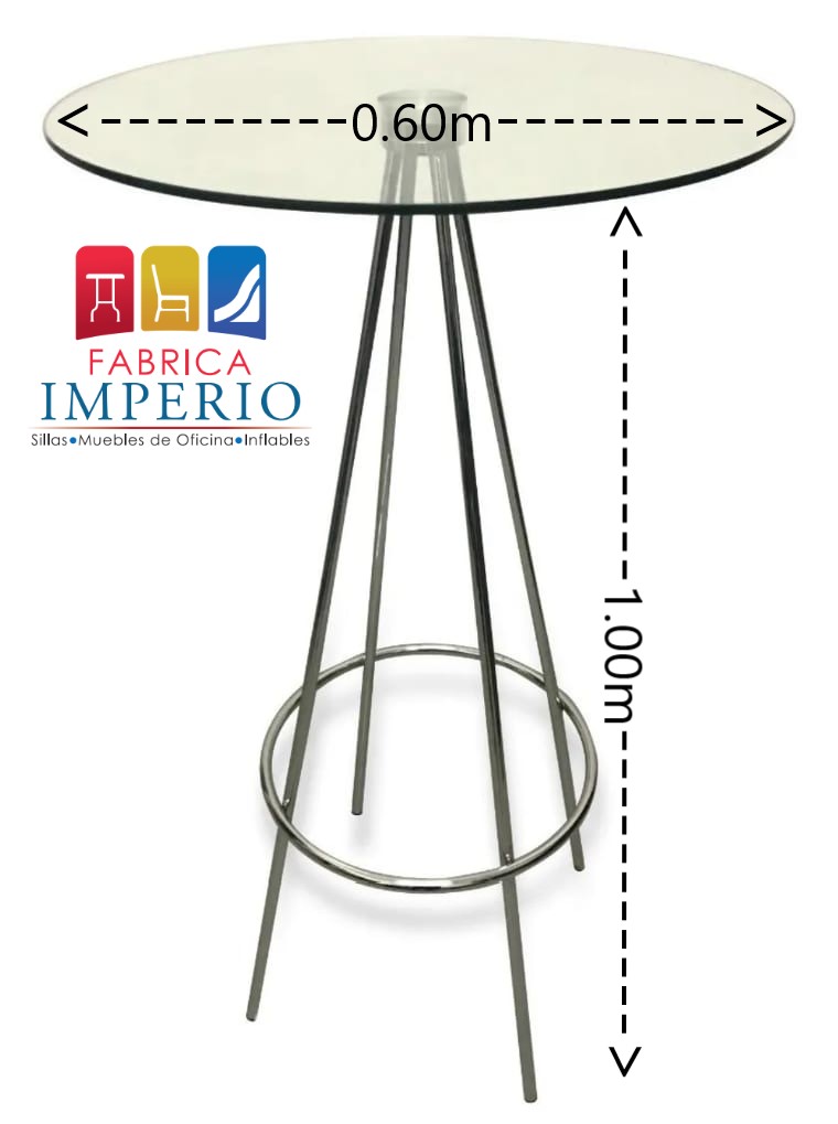 MESA ALTA CIRCULADE DE 0.60M DE DIAMETRO CON CUBIERTA EN VIDRIO
