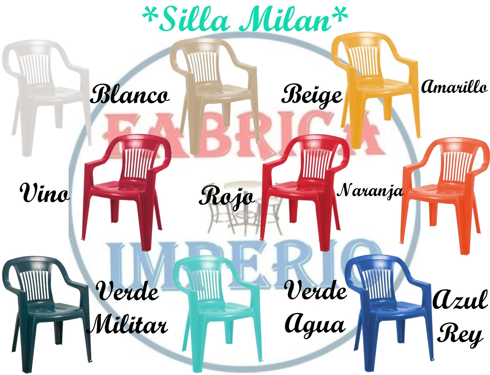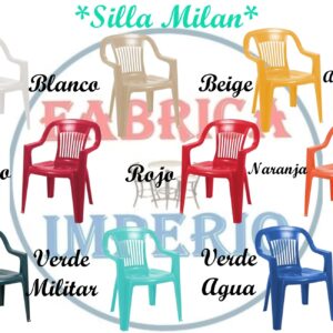 Silla plástica modelo Milán fabricada en polipropileno disponible en 9 colores a elegir, esta silla cuenta con descansa brazos, es ideal para uso en exteriores como jardines, playas y terrazas, su diseño apilable la hacen fácil de almacenar y transportar, gracias a su fabricación en plástico es muy fácil de limpiar pues es resistente al agua.