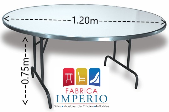Tablón plegable fibra de vidrio redondo de 1.20m de diámetro con capacidad para 8 personas.