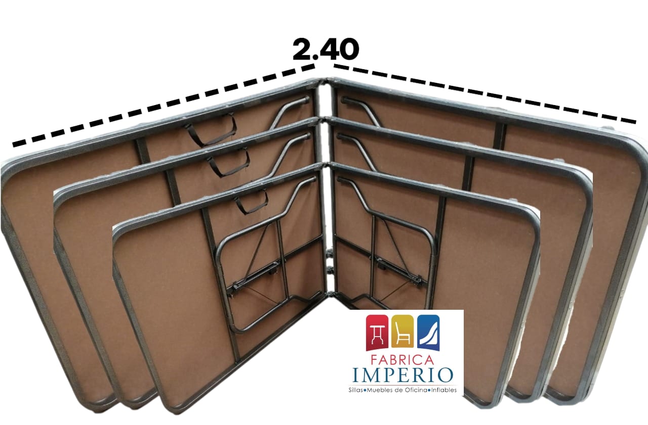 El tablón tipo maletín fibracel rectangular de 2.40m de largo x 0.75m de ancho x 0.75m de alto esta fabricado con madera prensada, cuenta con una estructura tubular de 1 1/2″ calibre 20 pintada con pintura en polvo electrostática horneada, este tablón es una propuesta económica y funcional, perfecto para eventos y ocasiones en interiores su diseño plegable lo hace ligero y compacto para facilitar su manejo. (Medidas en forma maletín: 1.20m x 0.75m x 0.20m)
