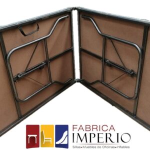 Tablón plegable tipo maletín de madera prensada de 2.40m de largo x 0.75m de ancho con capacidad para 10 personas.