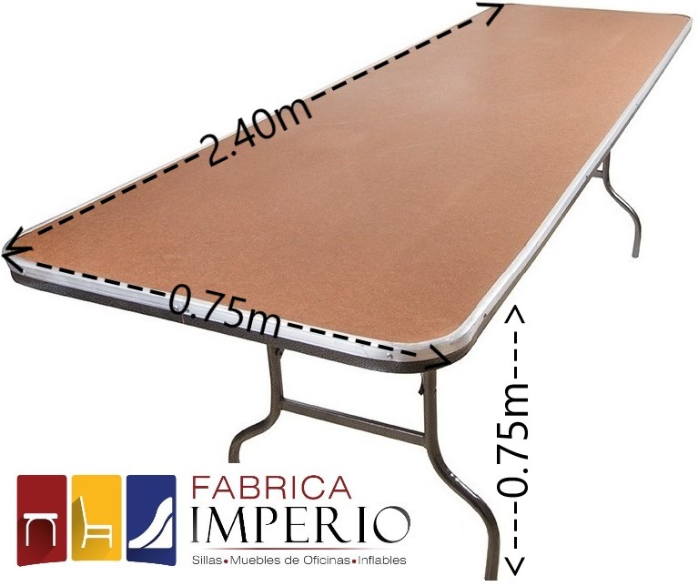 El tablón rectangular de 2.40m de largo x 0.75m de ancho x 0.75cm de alto esta fabricado con fibracel, cuenta con una estructura tubular de 1 1/2″ calibre 20 pintada con pintura en polvo electrostática horneada, este tablón es una propuesta económica y funcional, perfecto para eventos y ocasiones en interiores.