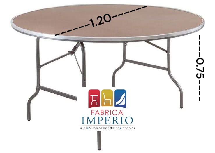 Tablón plegable fibracel redondo de 1.20m de diámetro con capacidad para 8 personas.