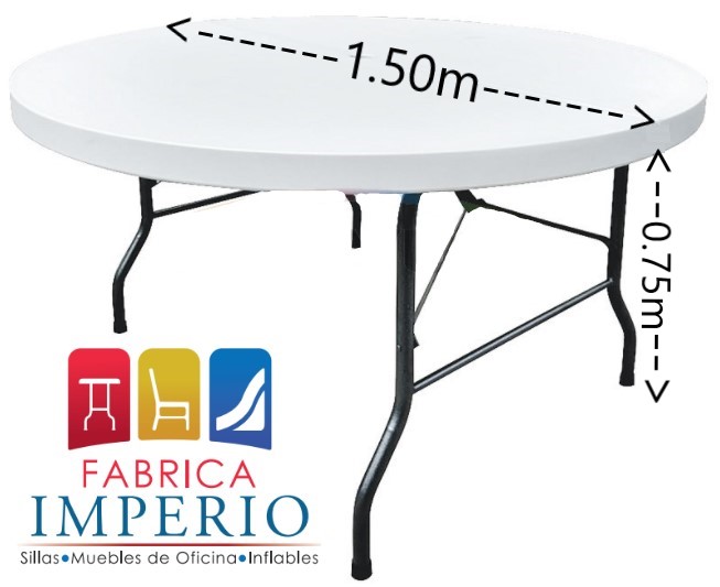 Tablón circular plegable de polietileno color blanco de 1.50m de diámetro ideal para 8 personas.