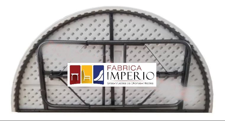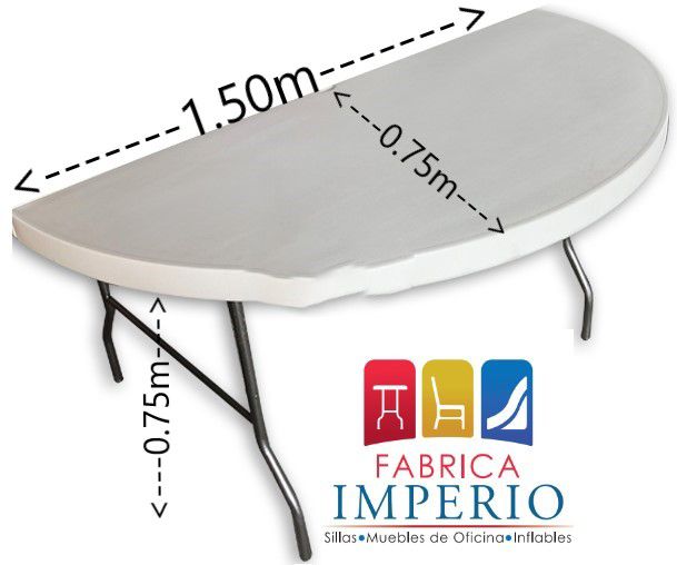 Tablón media luna plegable de polietileno color blanco de 1.50m de diámetro x 0.75m de radio.